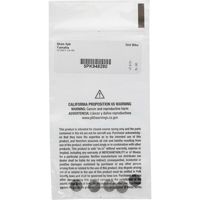 Part 5PK948280 Hot Cams Shim 5pk Retail Price:Your Price$9.95 Pack Size:eaQty / Unit:1 Quantity -+ Add to Cart Quantity discounts available QuantityPrice DescriptionHot Cams Shim 5pkFits ModelsYZ 250 F (14-16)SpecsHardness55-60 HRCOD9.480 mmThickness2.800 mm