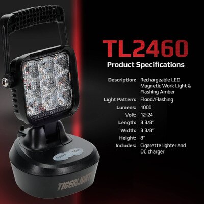 Description | Tiger Lights Rechargeable LED Magnetic Work Light & Flashing Amber |